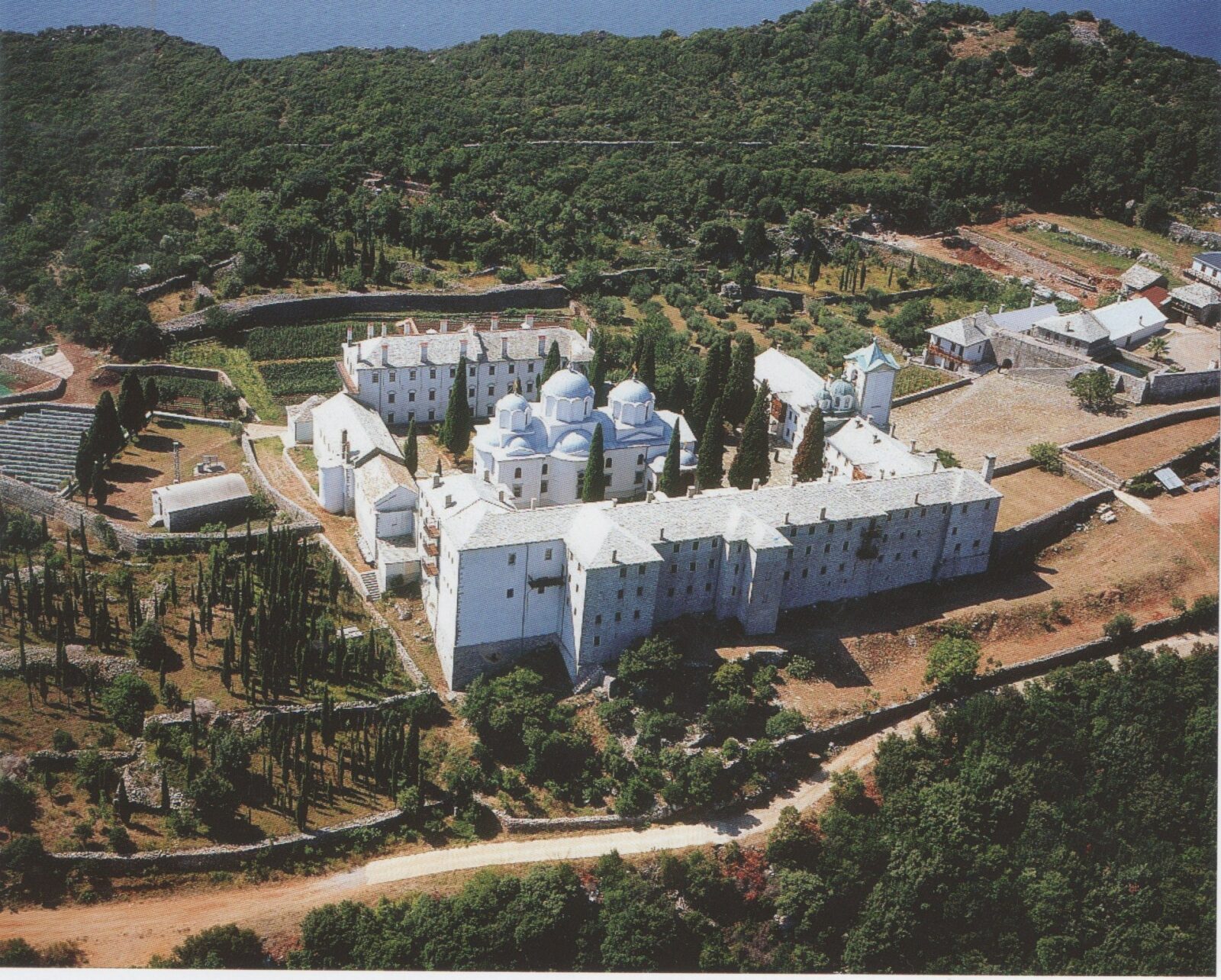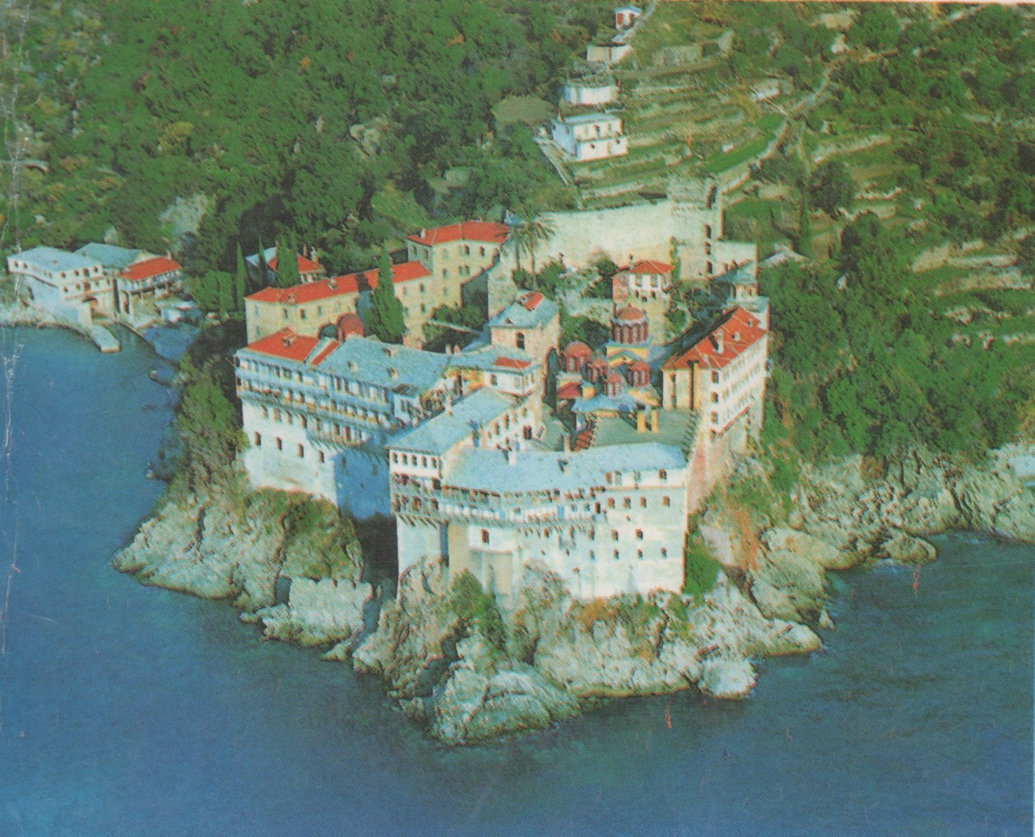 - Mănăstirea Esfigmenu. Numele mănăstirii (care înseamnă strâmtorat) provine de la faptul că este aşezată între trei coline. Istoria ei este asemănătoare cu a celorlalte mănăstiri athonite. Aici a trăit la un moment dat vestitul Grigore Palama, unul dintre cei mai vestiţi teologi ai Bisericii Ortodoxe. Danii importante au făcut mănăstirii Neagore Basarab, Petru Rareş, Constantin Brâncoveanu, familia boierilor Costache şi alţii. În prezent, călugării de aici sunt izolaţi de ceilalţi din Sfântul Munte, datorită faptului că ei nu au acceptat caledarul gregorian, utiziându-l încă pe cel iulian, prin care se află cu 13 zile în urmă faţă de restul. Stareţul mănăstirii a fost exclus din Sfânta Chinotită, şi pentru faptul că monahii din subordine refuză să pomenească numele Patriarhului Ecumenic, care ar fi prea tolerant cu catolicii. Deviza lor este „Ortodoxia sau moartea”. Dar aceasta este o altă porblemă, care nu ne interesează în contextul de care vorbim.