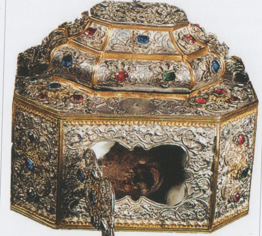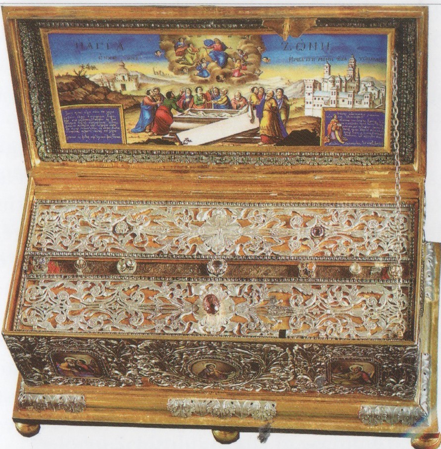 Părintele Chiril, român, care se îngrijeşte de sfintele odoare, ne oferă gratuit un pliculeţ cu o panglică (atinsă în prealabil de Brâul Maicii Domnului), din care putem să tăiem şi noi bucăţi şi să le dăm celor apropiaţi, precum şi o sticluţă cu ulei. Tot părintele Chiril ne prezintă şi caseta în care se păstrează capul Sfântului Ioan Gură de Aur, împreună cu o ureche. E un miracol că se păstrează urechea, fiindcă, ne spune Părintele Chiril, după deces, urechile, ochii şi nasul sunt primele organe care se descompun.
