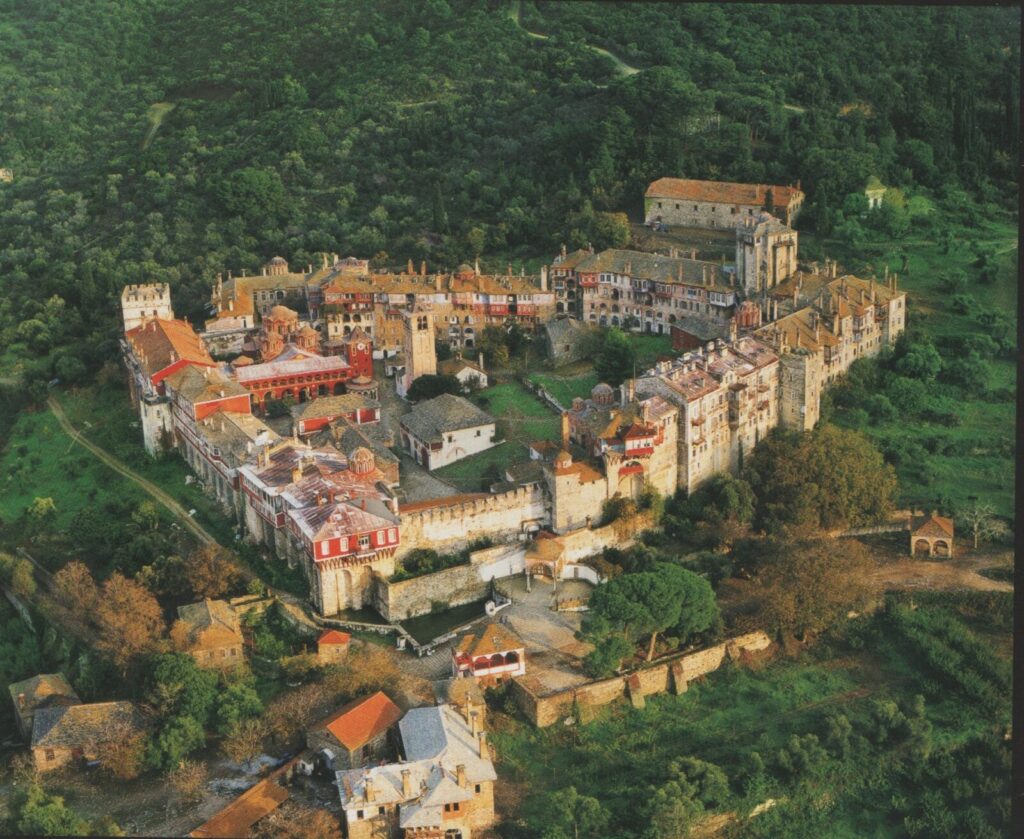 La începutul secolului X, mănăstirea a fost distrusă de piraţi, fiind reconstruită mai târziu (în anul 972), de către trei oameni înstăriţi din Adrianopolis: Atanasie, Antonie şi Nicolae, care s-au şi călugărit pe Muntele Athos. Aici a vieţuit, între alţii, Sfântul Grigorie Palamas, călugăr creştin ortodox, unul dintre cei mai mari teologi ai ortodoxiei, canonizat la doar 9 ani de la moartea sa.
