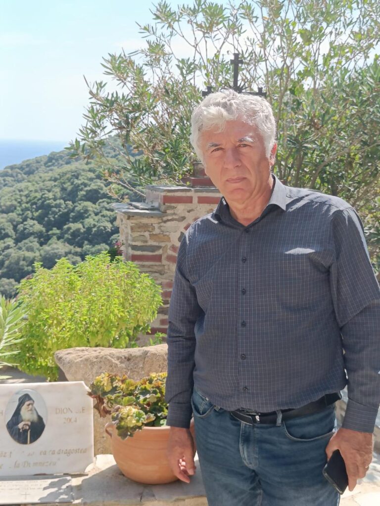 Cum despre Părintele Dionisie vom vorbi pe larg în alt capitol, să mai spunem doar că acesta a decedat în 2004, la vârsta de 95 de ani, dintre care 78 de ani au fost petrecuţi în Sfântul Munte Athos. A fost îngropat în micul cimitir al chiliei. I-am văzut mormântul, plecând de la chilie, spre Mănăstirea Pantocrator.