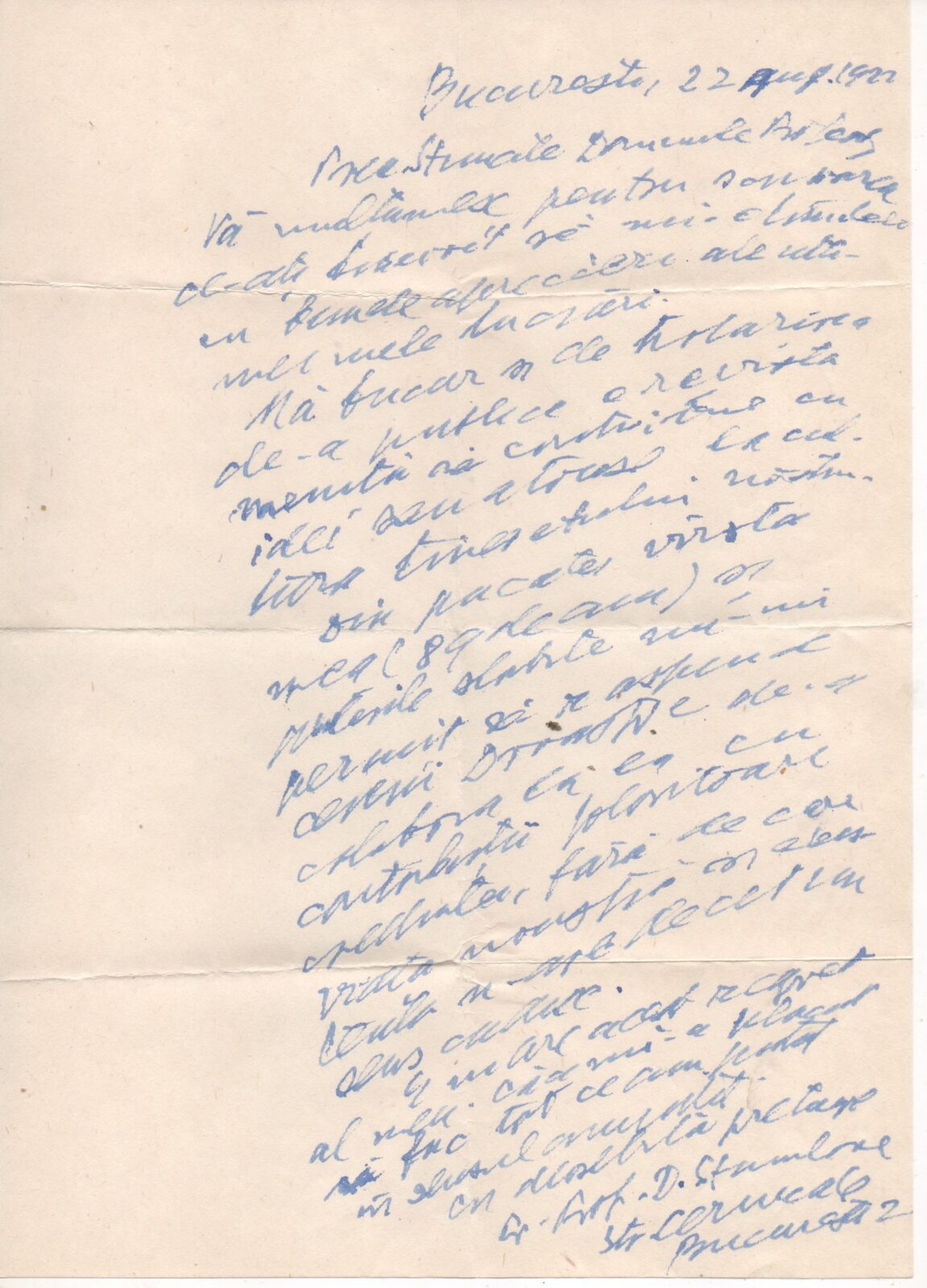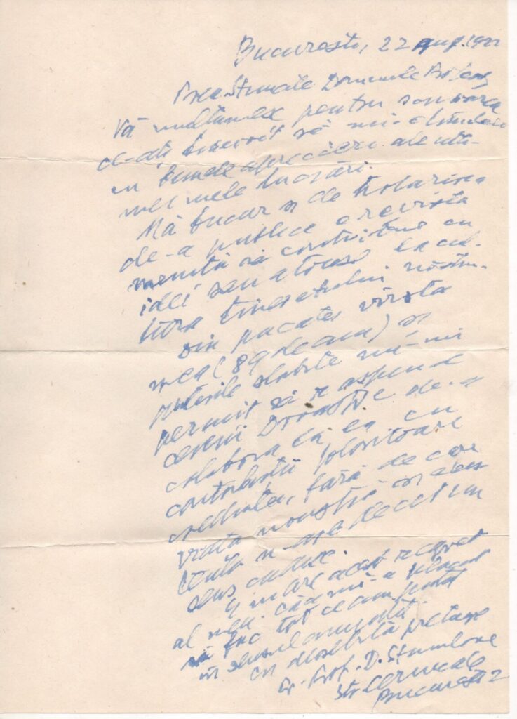 Vă mulţumesc pentru scrisoarea ce aţi binevoit să mi-o trimiteţi, cu bunele aprecieri ale ultimei mele lucrări1.